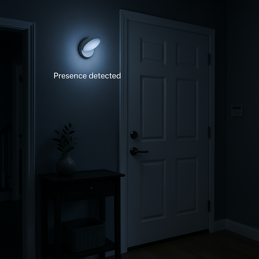 Le détecteur de présence radar millimétrique 60 GHz change la donne. Il capte les micro‑mouvements du corps humain (même assis ou endormi) et ignore les objets inanimés. Résultat : détection instantanée (~0,5 s), angle 60°/60°, sans caméra et sans atteinte à la vie privée. Puissance d’émission ≤10 dBm, inoffensif pour le corps. Enfin une présence vraiment fiable.