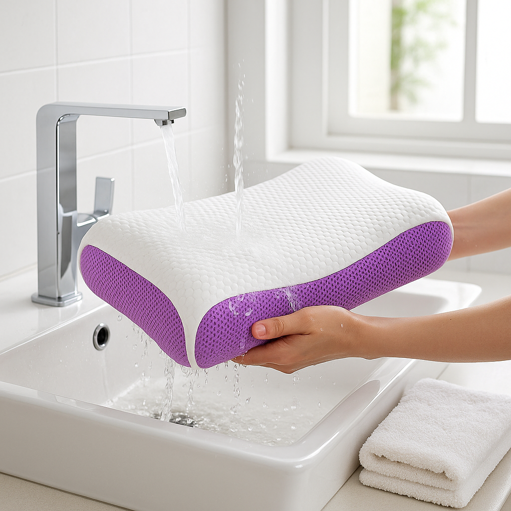La solution : un oreiller lavable à l’eau, simple comme bonjour. Rincez, laissez égoutter, c’est propre et frais en un clin d’œil. La matière TPE est durable, sans latex (idéal si vous l’évitez) et reste facile à manipuler au quotidien.